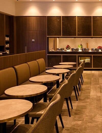 $54Plaza Premium Lounge at King Fahd International Airport, Dammam offers travelers a premium experience with buffet dining, live cooking, specialty coffees, and comfortable seating. Guests can enjoy high-speed Wi-Fi, charging stations, prayer and smoking rooms, shower access (charges may apply), and entertainment with TV channels.