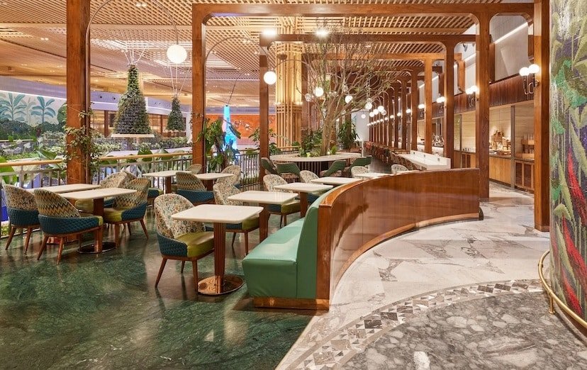 Located airside on Level 4 of the International Departures area, Terminal 2