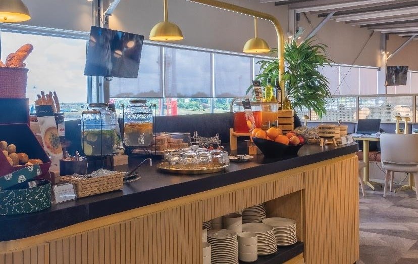 Plaza Premium Lounge at Jomo Kenyatta International Airport offers a relaxing space with food and beverages, Wi-Fi, shower facilities, lounge seating and more. The lounge features a modern design with a calm atmosphere, perfect for unwinding before departure.