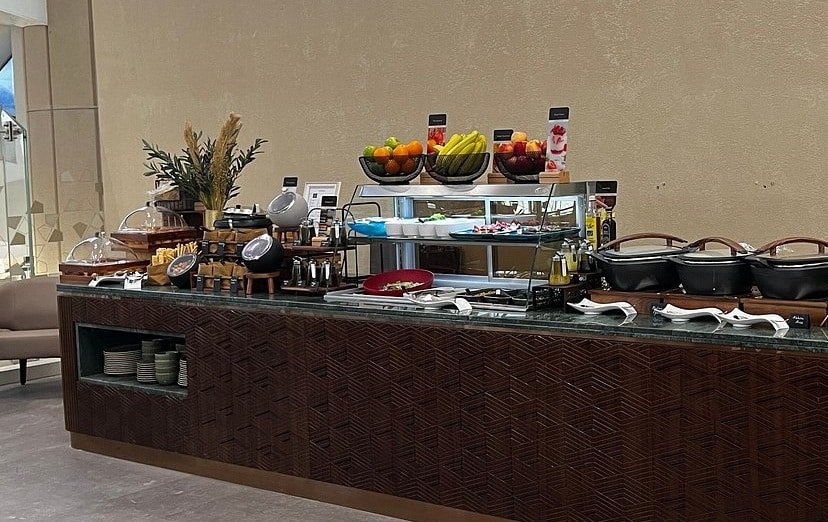 Plaza Premium Lounge at Riyadh International Airport offers a peaceful retreat featuring comfortable seating, freshly prepared local and international cuisine, complimentary Wi-Fi, charging stations, prayer and nursing rooms, shower facilities, TV channels, newspapers, and more—ensuring a relaxing and convenient experience for all travellers.