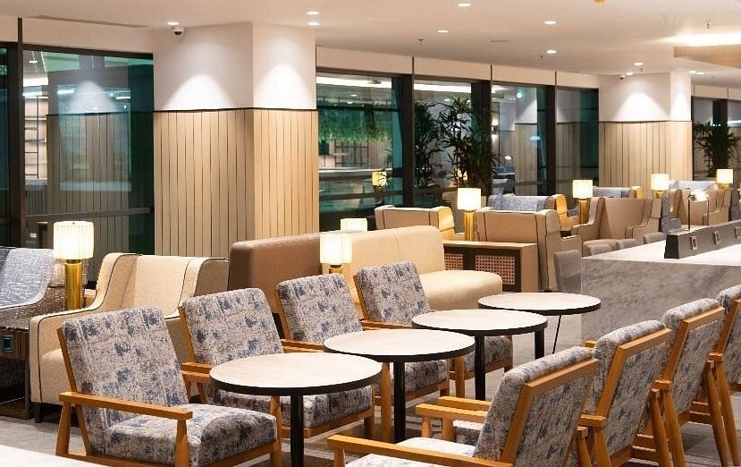 The Saphire Plaza Premium Lounge First at Soekarno-Hatta International Airport Jakarta offers dining, Wi-Fi, showers, and spa services for a premium pre-flight experience. Whether working or resting, experience comfort while awaiting departure.